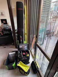 Vendo a pacchetto completo attrezzatura composta 2 canne italalcanna terranova 180 1 beach ledgering colmic con cime intercambiabili 1 beach caster daiwa 140 Piombi Serbidora Paletti x3 2 per mulinello shimano surf leader c14+ 35 2 mulinelli surf blas 8000 e 7000 Portacanne trabucco Porta esche Tutto quello in foto Piombi lenze ecc……