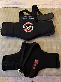 Attrezzatura boxe compresa di: due corpetti rdx t4, rdx T2, colpitore auto shock, due caschi rdx taglia medium modello hgr t1b, 2 para tibie
