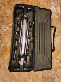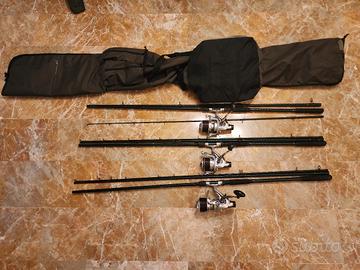 Vendo per trasferimento attrezzatura carpfishing completa. Canne, mulinelli con bobina di ricambio, rod pod con segnalatori, sedia, guadino, ombrellone con copertura laterale, sacca portacanne.