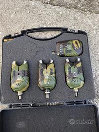 Buongiorno vendo in blocco la seguente attrezzatura, Rod pod Fox stalker, avvisatori hirisi con differenziale in calata e centralina, avvisatori prowess camou con centralina e 3 canne 13ft 3lb