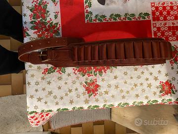 Set di borse per e cartuccera per caccia: n1 cartuccera in cuoio in ottimo stato da 30 cartucce cal.12 , n1 borsa porta cartucce in pelle in buono stato, n1 coppia di tasche porta cartucce (25 cartucce cal.12 ognuna ) da cintura in cuoio ottimo stato