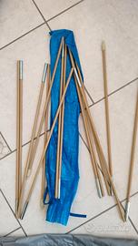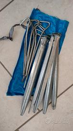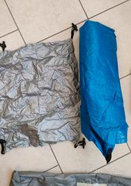 attrezzatura da campeggio tenda da due posti, doccia, picchetti, lampada a gas, ecc...