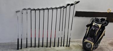 Carrello porta sacca da golf, 11 scatole di palline nuove e attrezzatura completa dal pat al driver taylormade (15 pezzi) Le varie attrezzature sono vendibili anche singolarmente.