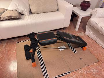 Attrezzatura da palestra come nuova: panca regolabile in 6 modi (piana, inclinata, declinata, seduta) e pieghevole per portarla ovunque. Includo una barra lunga, due manubri, pesi totali 36 kg (4 piastre da 5 kg, 4 da 2 kg, 8 da 1 kg), tappetino yoga, 4 chiusure.