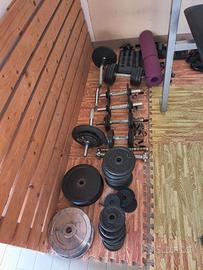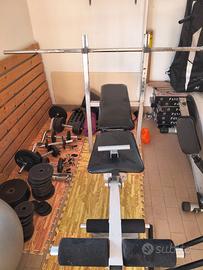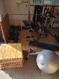 vendo panca Wilson con bilanciere e pesi; Bilanciere curvo EZ; Panca reclinabile Weider PRO 125; AB SLIDE BODY ACTION FITNES TOTAL BODY TRAINER; 5 manubri con pesi; 10 mq di tappeto componibile per pavimento palestra; Ellittica