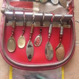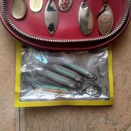 Attrezzatura da pesca Spinning, ideali per canne da pesca Trota Mare lago Fiume torrente, trote, serra, luccio, persico ecc ecc Porta Cucchiaini e Ondulati in pelle Con all'interno molto materiale Marche Mepps Rulfi ed altri 16 pezzi 4 pezzi Esche Siliconiche Nuove Ami da Spinning Nuovi Tutto come in foto. Solo in lotto 55 euro Prezzo già molto basso non trattabile. Consegna a mano Torino pagamento contanti Spedizione possibile in tutta Italia previo accordo in privato con tracciabilità, costo di 12€. QUINDI se da spedire contattatemi privatamente. Non fate Offerte Non vendo tramite TuttoSubito Ho a disposizione altro materiale da pesca tra i miei annunci.