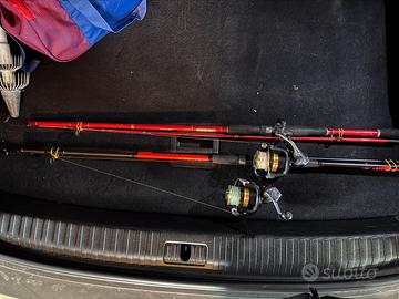 Vendo per inutilizo attrezzatura da pesca da barca -1 cassetta panaro -1 canna da drifting shimano tld completa di mulinello - 2 canne da barca -1 canna da slow