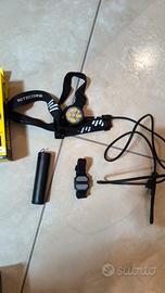 Torcia modello Nitecore Hu60 da 1600 lumen, con prolunga per batteria che rende la torcia leggerissima alla testa potendo mettere comodamente la batteria in tasca+ braccialetto wireless per avere il comando della torcia al polso. L attrezzatura si presenta tutta in condizione ottimale e la torcia nello specifico è pari a nuova.