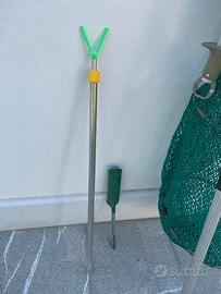 Vendo guadino telescopico pieghevole, una rete porta pesci, due porta canne e una pinza laserfish. Vendo causa inutilizzo