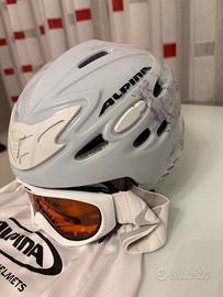 Vendo casco e maschera ALPINA. Tenuti perfettamente. Il casco ha una fantasia unica, introvabile, stilosa. La maschera con lenti arancio è perfetta per condizioni di poca visibilità.