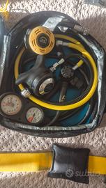 • erogatori coltri sub primo e secondo stadio completi di octopus, profondimetro e manometro (gli erogatori sono stati comprato usati e sono stati fatti revisionare un anno e mezzo fa, a fine anno è strettamente consigliabile una nuova revisione come da prassi)