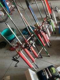 Canne, mulinelli, guadini, canna Shimano ( costata950 euro) esche e portacanne. Rapala e artificiali. Cedo al miglior prezzo. Base 400 euro