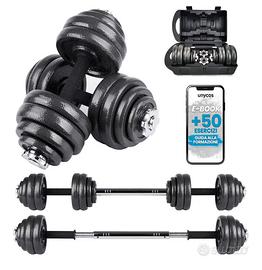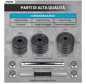 - Set manubri Unycos da 20 kg con valigetta (dischi intercambiabili, impugnatura antiscivolo, chiusure rapide) – pagati 78 €