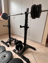 I supporti sono regolabili, permettendo di adattare l’altezza per diversi esercizi (panca, squat, ecc.).