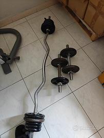 Salve cedo la mia attrezzatura per problemi di salute, il tutto comprende panca piana con supporto bilanciere e supporto per panca Scott marca domyos in ottimo stato, per quanto riguarda i bilancieri ne sono 3 tra cui 1 da 25mm, 1 da 28mm e l'ultimo quello curvo Z con annessi pesi come in foto, i pesi in totale sono 54kg accetto proposte, possibilità di cedere anche a pezzi singoli o tutto insieme, ripeto vendo perché non posso più praticare questo sport