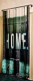 Tenda raffigurante rack su sfondo verde con scritta HOME completa di asta in alluminio nera 10eur DISPONIBILE