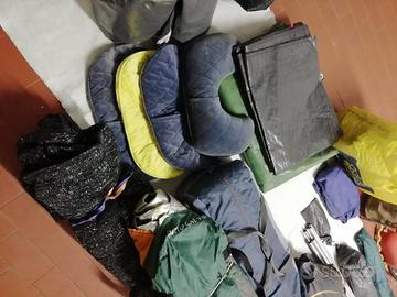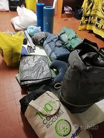 2 tende, 1 sacco a pelo Quechua, 2 tappetini, 3 stuoie, 1 fornello cucina, 2 tendalini in rete, 4 cuscini gonfiabili, picchetti di vari tipi, ecc.