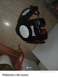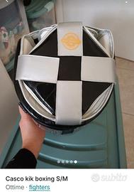 Attrezzatura indossata da mio figlio di 12 anni per pochi mesi.....i guantoni sono una taglia da adulto..il casco è una taglia S/M e la pettorina va bene anche per i piu piccoli quest'ultima non l'ha mai usata...nuova