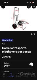 Vendo usato 4/5 volte sedia+cassetta+ carrello+stivali nuovi mai usati n.40/41+portacanne….vendo in blocco non separato e ritiro a mano