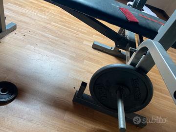 Cedo attrezzi per palestra tutto compreso come da immagini con 46 kg di pesi suddivisi , di vario peso