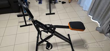 cyclette ellittica + panca piana pettorali + panca addominali inclinata + 4 dischi da Kg 10 in ghisa + 2 dischi da Kg 5 in ghisa + 8 dischi in plastica da kg 5 + bilanciere da 150 cm (diametro 27 mm) + Total crunch + barra trazioni a muro per parete