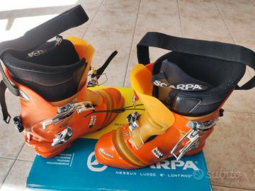 Completo per scialpinismo cedo anche separatamente: Scarponi Scarpa mod. F3 poco utilizzato perchè inadatto al mio piede, in ottime condizioni, taglia 44 e 1/2 senza soletta sottopiede, scarpone molto robusto e flessibile per la salita, previsto anche per attacco Dynafit. Sci Trab Space Piuma Carbon ultraleggeri, lungh. 1,87 completi di attacchi Dynafit. Rampanti Dynafit in lega leggera e pelli sintetiche quasi nuove. All'occorrenza potete visionare anche di persona o fare un'offerta.