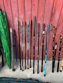 Vendo vecchia attrezzatura da pesca per sgombero garage , canne e minuteria varia. Le canne nella seconda foto sono da considerare come pezzi di ricambio preferisco consegna a mano zona Ferrara e limitrofe. Le canne utilizzabili sono 17.