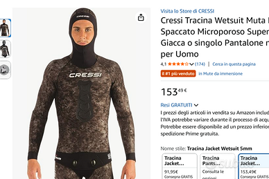Nello specifico i prodotti mostrati in foto (ho inserito 6 foto ovvero il massimo permesso da subito) hanno un valore di circa €1.200 a questa attrezzatura dovete aggiungere un fucile Cressi SL 55 modello 2025 del valore di €130