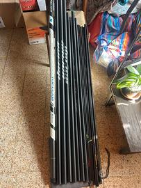Rbs italica aria top class carpa canna a 13 metri piu punta al 4 pezzo piu 2 puntoni combat kit mini allunghi e tubi Panchetto colmic one con piatto barra porta punte e pinocchietto Rullo colmic poi porta punte guadino maver a innesti e sacca maver