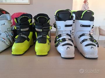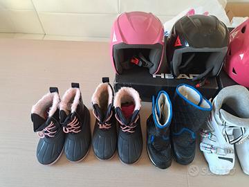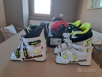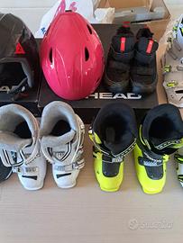 vendo la seguente attrezzatura da sci tenuta in buono stato: scarponi head raptor 60 misura 24 - 24.5 prezzo € 60 scarponi head raptor 40 misura 23 - 23.5 prezzo € 40 scarponi head Z2 misura 20 - 20.5 prezzo € 30 scarponi rossignol fun girl misura 18 - 19.5 prezzo € 35 doposci blu e rosa misura 28 - 29 e 30 - 31 prezzo € 10 casco Dainese fucsia regolabile misura 48 - 56 prezzo € 20 casco Dainese nero misura 54 JM prezzo € 20 casco Dainese rosa misura 54 JM prezzo € 20 Costo spedizione: € 10 su qualsiasi ordine. resto a disposizione per qualsiasi informazione