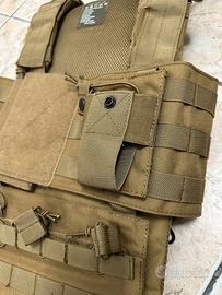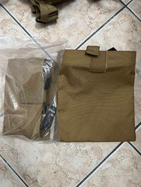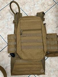 Vendo attrezzatura softair come in foto. Il Rig/Tattico da softair è composto da: Sacca laterale sinistra porta oggetti Sacca porta radio sul petto sinistro 2 Sacche estrazione caricatori, una quella già montata con molle per tenere i caricatori saldi e una quella a parte (nuova) per estrazione rapida caricatori senza molle Zaino già montato nel tattico Porta acqua da 2,5 litri già assemblata nello zaino con beccuccio per bere che scende dalla spalla sinistra Cinturone taglia M 2 sacche (quella ancora imbustata e quella fuori busta) uguali da mettere a destra e sinistra del cinturone per porta caricatori esausti, porta pallini ecc… Il tutto è praticamente nuovo come si vede in foto