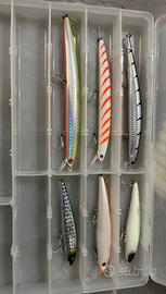 Vendo i seguenti articoli canna sg4 14-42gr con mulinello schimano sedona 5000 imbobinato con trecciato schimano kairiki 8 scatola porta artificiali con artificiali seaspin come mommotti 190 mommotti 180 mommotti 160eja 130 eja115 ,gripper con bilancia zaino e cappellino savage il tutto è stato usato solo x 2 uscite quindi tutto nuovo immacolato (tutto pronto per andare a pesca )