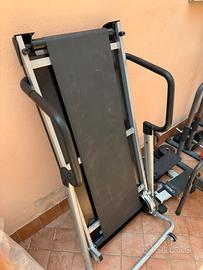Vendo set attrezzatura sportva professionale panca con bilancere cavalletti ginnici pedaliera per gambe set manubri con vari pesi bicicletta ginnica e tapirulan tutto in perfetto stato