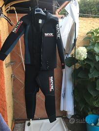 Vendo attrezzatura da Sub composta come si vede dalle foto da: GAV Cressi Taglia M; Muta Seac Sub Privilege 5mm due pezzi con cappuccio incorporato Taglia M, usata un paio di volte; Pinne Mares Avantix 3 Taglia Small regolabili; Erogatori Octopus attacco DIN Cressi; Computer Suunto Vyper; Cintura con piombi. Si vende attrezzatura ad Euro 350 e computer a Euro 100 (quest'ultimo si cede separatamente eventualmente solo dopo aver venduto il resto dell'attrezzatura).