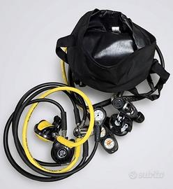 Vendo per inutilizzo lotto completo di attrezzatura subacquea di alta qualità, ideale per chi cerca affidabilità e prestazioni in acque temperate e fredde. Gran parte dell'attrezzatura è di marchi leader come Aqua Lung, Technisub e Mares. Il lotto comprende: 1. Muta Stagna Aqua Lung (Nera): Modello robusto con cerniera diagonale frontale per vestizione autonoma. Include valvole di carico/scarico, calzari morbidi, cappuccio e stivaletti separati. 2. Set Erogatori Aqua Lung: Primo stadio con secondo stadio principale e octopus (giallo). Include manometro analogico, frusta GAV e borsa di trasporto dedicata. (Si consiglia revisione pre-utilizzo). 3. Computer Subacqueo Mares Puck Pro: Affidabile e intuitivo, perfettamente funzionante (batteria ok). 4. Secondo Computer Subacqueo: Modello di backup con ghiera blu, display LCD attivo. 5. Pinne Aqua Lung X-Shot: Scarpetta aperta, complete di cinturini a molla (Spring Straps) in acciaio inox per una calzata rapida. 6. Cintura di Zavorra: In nylon con fibbia inox "Triumph" e 4 piombi gommati (circa 5-6kg totali). 7. Accessori di Sicurezza: Pallone di segnalazione (SMB) Best Divers con sagola e asta "muddler" per segnalazioni subacquee. 8. Coppia di Maschere: 1 maschera Technisub/Aqua Lung (predisposta per lenti ottiche) + 1 maschera in silicone nero.