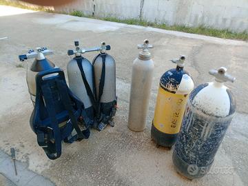 Bombole varie 1 Bombola da 20 LT 1 mono da 18 LT 2 mono 15 LT 1 mono 12 LT alluminio 3 erogatori tutto in buono stato ma da revisionare