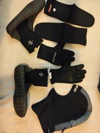 Vendo attrezzatura subacquea: - Muta semistagna Cressi XL cerniera da sostituire, per il resto è nuovissima completa di cappuccio, scarpette e calzari € 50; - Gilet neoprene Seac taglia L € 20; - Primostadio ed erogatore SEAC con profondimetro e manometro € 100; - Primo stadio ed erogatore SEAC Synchro € 100; - Primo stadio ed erogatore SEAC con manometro € 100; - Torcia Mares alluminio ricaricabile € 50; - Torcia miniVega € 30. I prezzi non includono le spese di spedizione. Valuto vendita in blocco con prezzo da concordare. Ulteriori foto disponibili