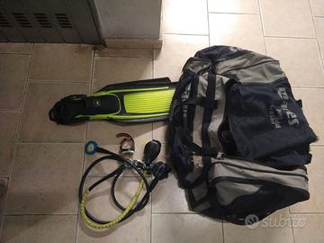 Erogatori, pinne Technisub, borsone con ruote ( da rattoppare perché si è scucita una parte) Computer venduto