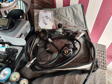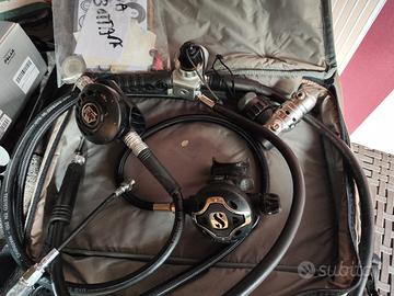 vendo attrezzatura subacquea erogatori appena revisionati vendo per non più utilizzata ma sempre tenuta bene se acquistata in blocco regalo borsone e custodia con macchina.fotografica