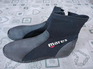 Attrezzatura varia acquistabile singolarmente o come lotto completo. -Muta Mares uomo tg. 3 -Mutino Mares uomo tg.4 -Cappuccio -Guanti Scubapro -Scarpette Mares -Pinne+attacchi