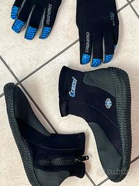 Borsone con rotelke gav taglia XL, muta semistagna due pezzi taglia L, scarpette taglia L 5mm,guanti neoprene 5 mm taglia L