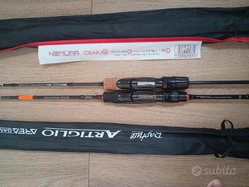 VENDO ATTREZZATURA TROUT AREA: 1 CANNA TROUT AREA RAPTURE ULTRA LIGHT 0.4-6 GRAMMI - 1.83 METRI 1 CANNA NOMURA OSAKA ULTRA LIGHT 0.4-4 GRAMMI - 1.83 METRI 1 MULINELLO SPINNING DAIWA CROSSFIRE 1000 ( imbobinato con treccia Venom 0.06) 1 MULINELLO SPINNING BLACK SHARK 1000 (imbobinato con treccia Venom 0.06) 60 SPOON 4 GRAMMI, 3 GRAMMI, 3.5 GRAMMI, 2.5 GRAMMI, 2 GRAMMI, 1.5 GRAMMI 3 CRANK 1 HYDRAM NANO S VALKEIN 3.1 GRAMMI 4 MASU NO KOEDA S DAIWA 1.5 GRAMMI OMAGGIO PORTA SPOON ABU GARCIA TUTTA L'ATTREZZATURA È COME NUOVA, USATA PER 3 MESI.