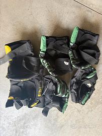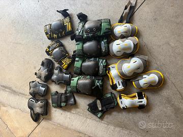 Vendo in blocco, n. 2 pettorine Acerbis per bambini misura L XL, n. 3 caschi usati per mountabord, n. 3 coppie para ginocchia, n. 5 coppie para gomiti e para mani.