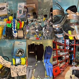 PREMETTO CHE HO SOLO I PRODOTTI CHE SI LEGGONO SOTTO ELENCATI: Vendo cauda CHIUSURA ATTIVITÀ Shorty(taglia L donna e taglia XL uomo) sotto muta(Rashguard intera o maglia lycra Aqualung) ultima mute Triatlon taglia M lady guanti(5mm ultime taglie) guanti stagni(taglia S) pinne con cinghiolo: Caravelle Aqualung(small) e Avanti4 Mares(small) fruste in gomma fruste da travaso(int) fruste da sonda(14,15 e 19 cm) cinturini porta contelleria tool(tipo coltellino svizzero) per bombola o primo stadio primi stadi nudi borsa porta erogatore AcquaChiara (contiene fino a 2 gruppi) zaino borsone porta attrezzatura Poseidon reti per bombole(da 8 a 18lt) rubinetteria mono e bibombola fondello mono e bibo fascioni inox per bibo fascette in inox per bombola slitte inox per foto o bombolino Tabelle decompressione moschettoni inox DRing cinture piombi piombi a sacchetto(1,5kg e 2kg) AirGun accessori Jacket AudaxPro copri cinturini maschera accessori per snorkeling o piscina T-shirt/Polo/Cappellini Scubapro, AcquaLung,Seac Possibilità di visionare la merce il negozio. Non effettuo resi.
