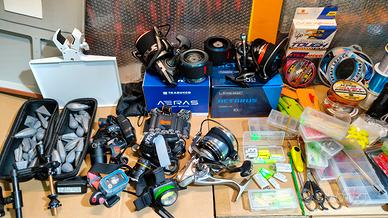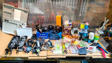 vendo pari al nuovo attrezzature surfcasting completa di tutto... ( NON VENDO ARTICOLI SINGOLARMENTE) .. vendo in blocco.. elenco parte dell'attrezzatura ( e troppa da elencare tutta... canna dipartita yuki H2 carbonio anelli fuji attacco fuji 200 ,250 gr. da 450 ... canna dipartita trabucco serenity Xtreme carbonio anelli fuji attacco fuji da 450.. 200 gr.. canna dipartita stalker 390 da 4 libre.. in carbonio anelli grandi.. mulinello trabucco aeras surf doppia bobina... mulinello colmic actarus doppio bobina.. mulinello rooblinos.. 2 serbidora una grande una da tripode... un tripode trabucco.. 2 paletti da 150 cn.. paletto serbidora telescopico.. cassone con ruote realizzato su misura e esigenze.. custodia trabucco x canne molto capiente.. 2 secchi pesci ... molta minuteria,lenze ecc .. 5 faretti led fronte.. faretto serbidora.. altre 3 canne telescopiche complete di mulinelli.. Starlight elettronici più quelli normali.. moltissimi piombi.. pawerbank x ricarica accessori.. .. per info chiedete... richiesta 600.00 euro ( vendo in blocco)