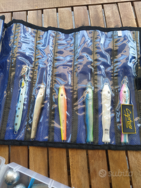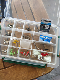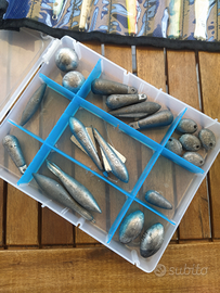 Vario materiale da Pesca, piombi, artificiali da vertical jigging, cassetta minuterie. Prezzo da concondare
