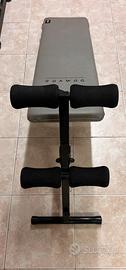 Panca per addominali, attrezzo per trazioni, 2 manubri con pesi e 2 manubri piccoli.l’attrezzo per le trazioni ha due impugnature tagliate ma utilizzabili