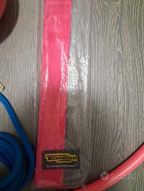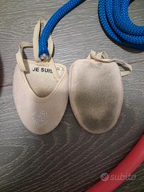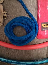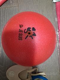 Attrezzi per ginnastica ritmica per bambina ( circa 7/9 anni). Nastro, palla ( da gonfiare un pò), cerchio rosa, corda, punte. !!!!! NB Il cerchio blu è stato venduto!!!!!