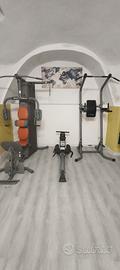 panca multipower per allenare petto, spalle, dorso, gambe, bicipiti e tricipiti con 90kg di carico € 350. vogatore con seduta mobile e fissa €120 barra per trazioni, dips e addome €130. vendo in blocco €500 o separati. Il tutto in ottimo stato