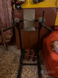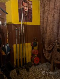 Vengo in blocco attrezzatura palestra da casa. 5 bilanceri di vario tipo, circa 180 kl di dischi, 2 manubri, una panca con cavalletti, una multifunzione e attrezzo per addominali.